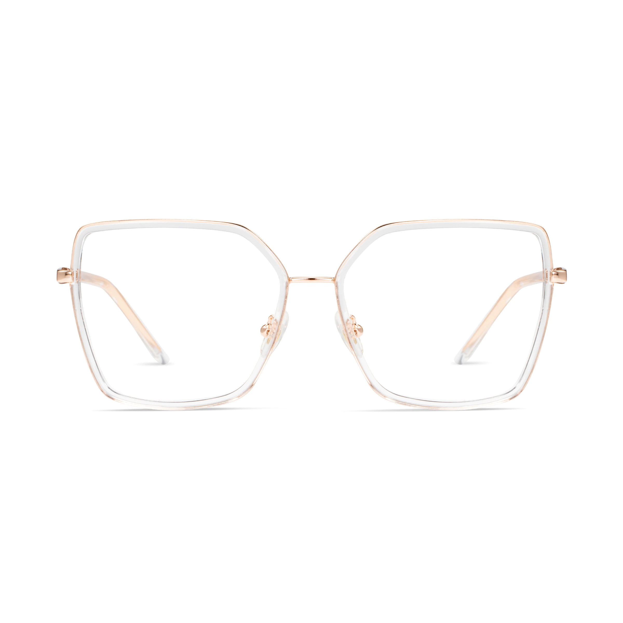 These clear and gold square glasses offer a chic, modern aesthetic. The combination of light and durable materials gives a sophisticated yet minimal look.