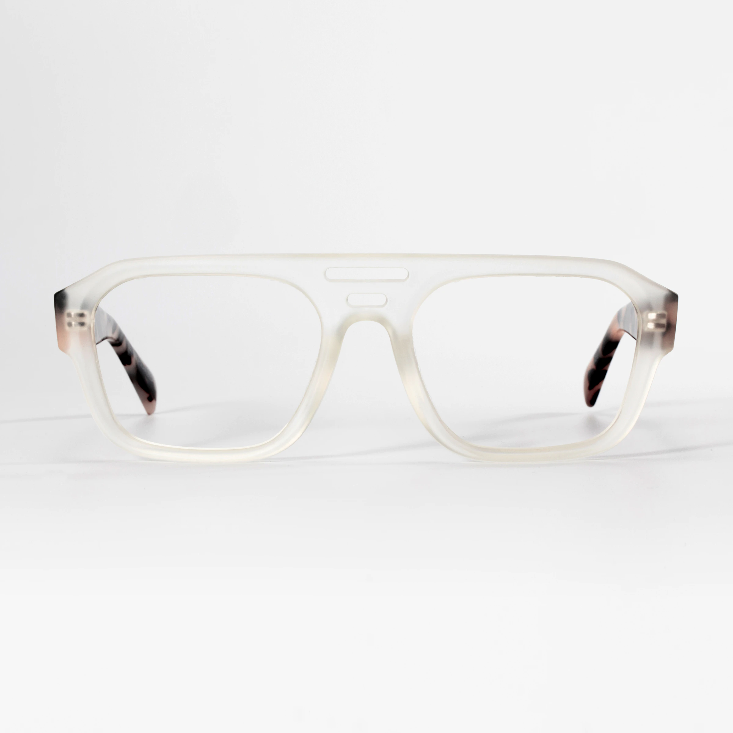 These clear square eyeglasses feature a bold full-rim design crafted from acetate and TR90, blending strength with modern minimalism. The transparent frame adds fresh, versatile appeal, delivering a confident, contemporary edge—perfect for everyday wear, work, or stylish occasions.