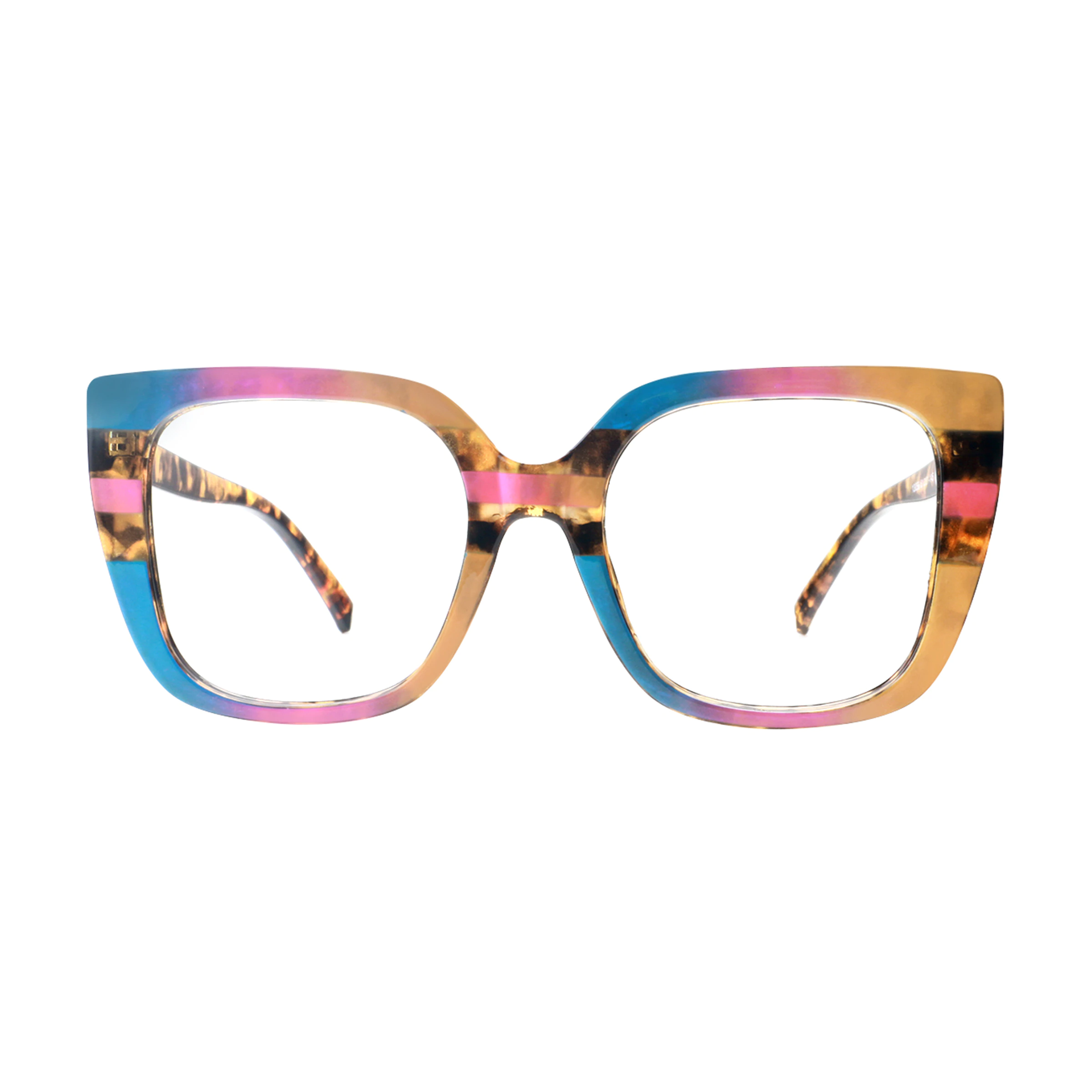 Multicolor accents over a tortoiseshell base in square frames offer a playful and trendy design. This blend of hues adds visual interest and personality to your eyewear, making it a standout accessory.