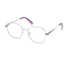 Add a pop of color to your look with these silver-purple geometric eyeglasses. The full-rim metal frame provides a sleek and durable design, while the soft purple accents add a subtle yet stylish flair, perfect for any occasion.