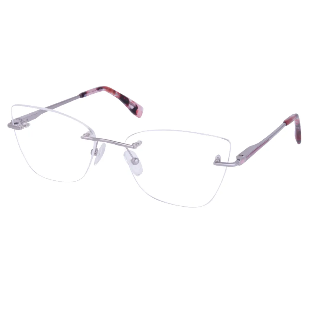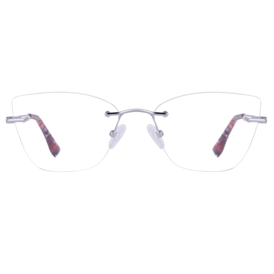 The Silver and Reddish Tortoiseshell Rimless Square glasses combine classic and bold aesthetics. The silver metal complements the rich reddish tortoiseshell accents, creating a sophisticated look with a touch of warmth. The rimless design enhances the glasses' modern appeal, making them a stylish choice for any occasion.