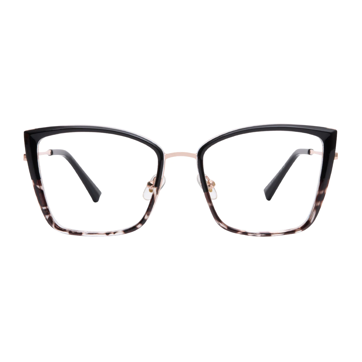 Unveil a sophisticated look with these tortoiseshell-black square eyeglasses. The fusion of classic tortoiseshell patterns with sleek black accents creates a stylish contrast, offering a trendy yet timeless accessory for every occasion.
