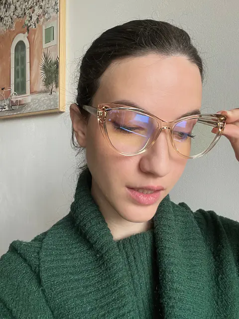 I wasn’t sure about the pink at first, but wow these frames are even prettier in person. The subtle tortoiseshell detail makes them feel more unique and not too loud. They’re super lightweight and sit comfortably all day. I’ve already gotten a few compliments at work—definitely one of my favorite pairs!