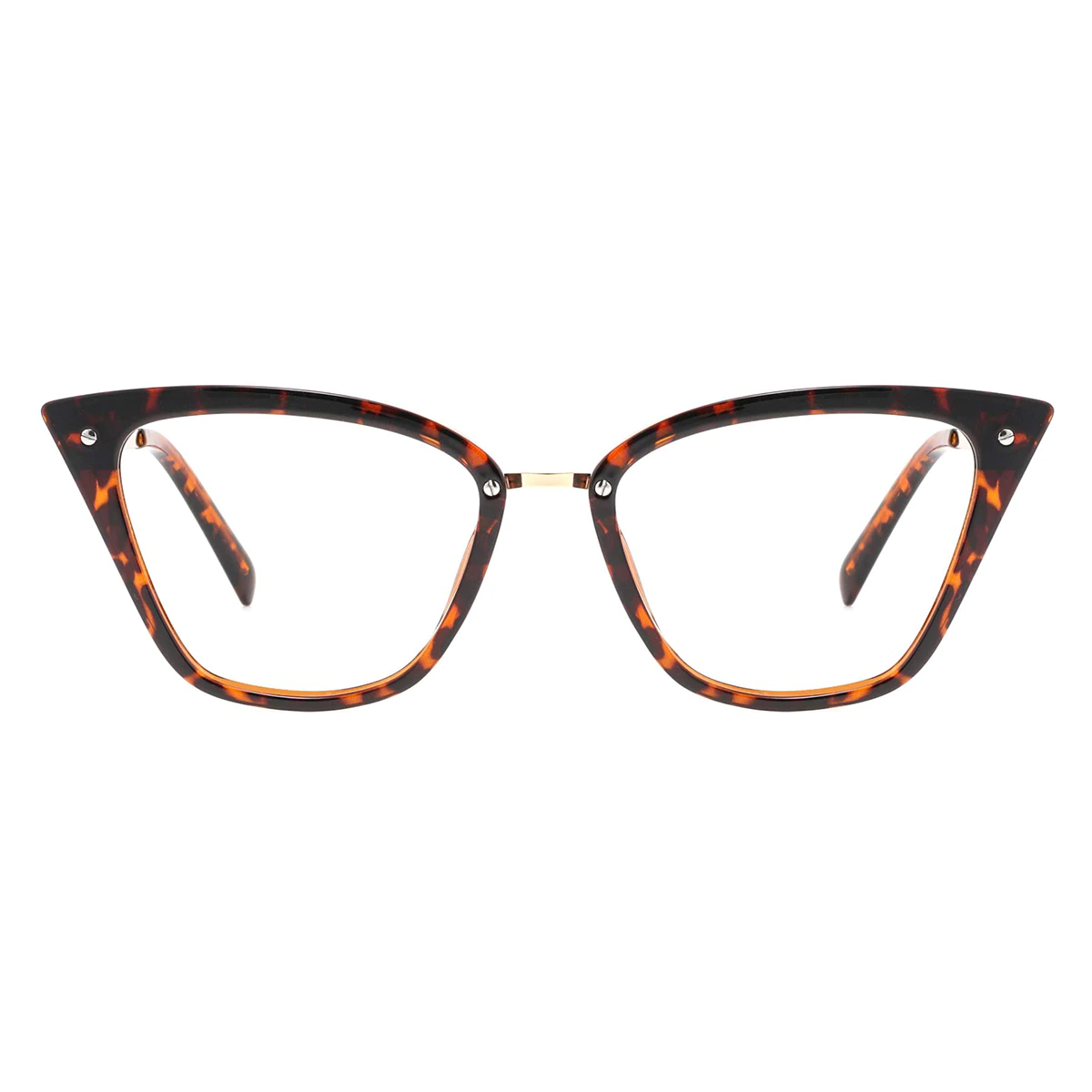 A tortoiseshell finish complements the cat-eye shape with a touch of retro elegance. Crafted from durable TR90 and metals, these full-rim frames are perfect for adding a unique twist to any outfit.