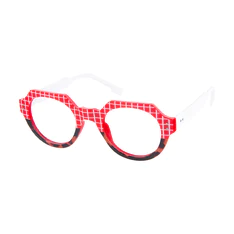 Make a bold statement with these Red-White geometric full-rim glasses. The vivid red frame paired with contrasting white accents creates a striking look that is perfect for anyone looking to express t...