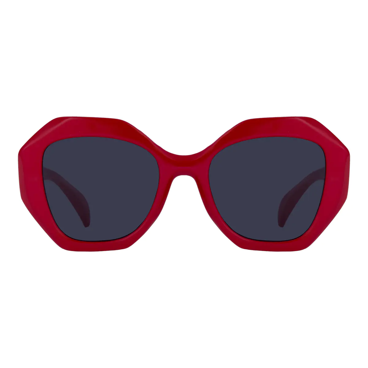 Make a daring statement with these eye-catching red geometric sunglasses. The vibrant red hue exudes confidence and personality, ensuring you'll turn heads wherever you go. Constructed from premium PC, these full-rim frames offer durability and comfort without compromising on style. The geometric design adds an avant-garde touch, making them perfect for fashion enthusiasts looking to express their unique style. Whether you’re at a festival or enjoying a sunny day out, these sunglasses will add a pop of color to your look.