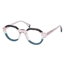 Discover the perfect blend of classic and modern with these brown and blue round glasses. Crafted from high-quality acetate, the full-rim design ensures both durability and comfort. The rich brown and vibrant blue color combination adds a stylish edge, making them ideal for fashion-forward individuals.